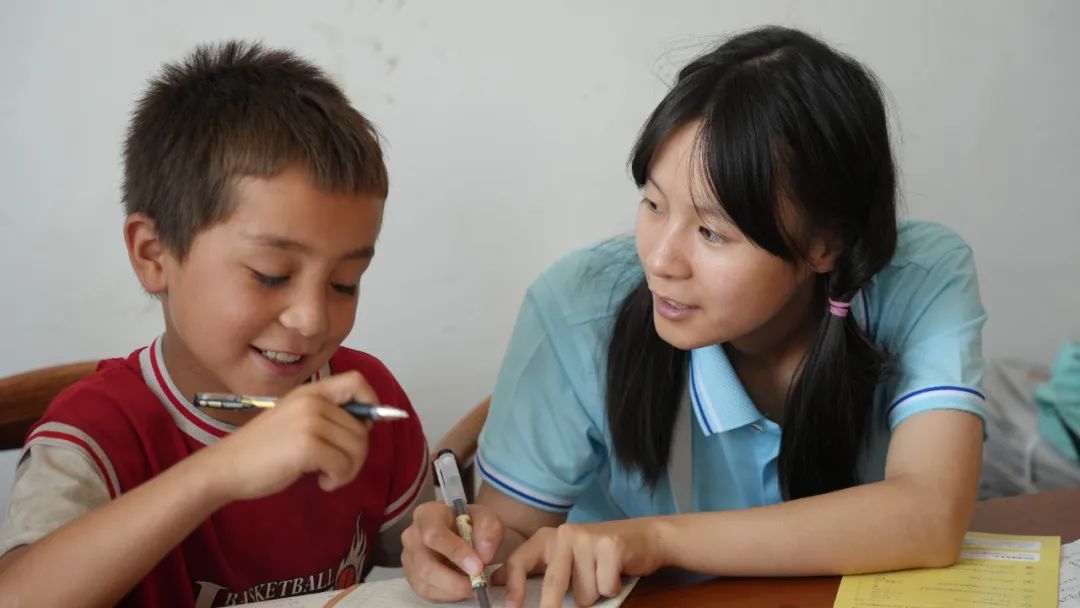 石河子大学三下乡老师在为小朋友辅导作业 唐科文 摄