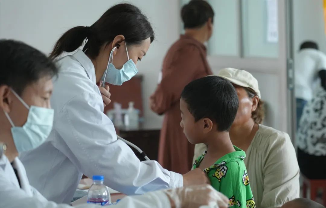 专家在为小朋友检查身体 秦欣宇 摄