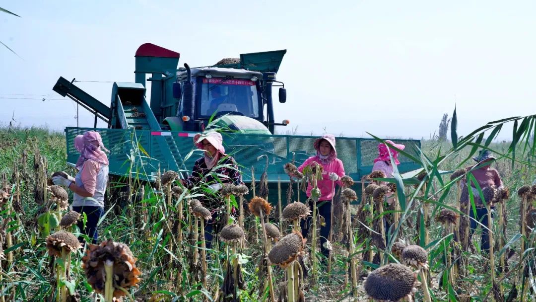 春种一粒粟,秋收万颗子。立秋过后,金黄遍野,二二四团一望无际的向日葵进入收获期,丰收的向日葵成为乡间田野一道靓丽的风景线。