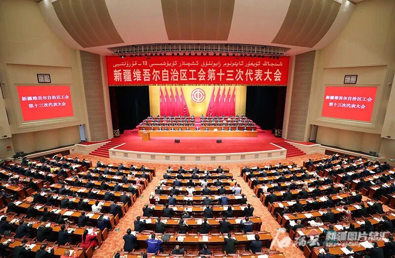 8月20日,新疆维吾尔自治区工会第十三次代表大会在新疆人民会堂开幕。石榴云/新疆日报记者 崔志坚 摄