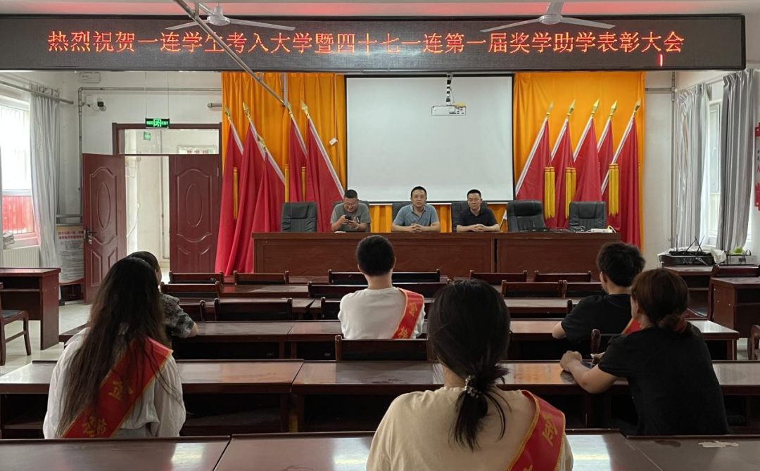 金桂飘香传喜讯,金榜题名梦起航。为激励优秀学子,引导连队广大学生继续奋勇拼搏、争先创优,营造支持和重视教育的良好氛围,近日,一连党支部召开四十七团一连第一届奖学助学表彰大会,对连队2023年取得优异成绩的4名高考学子发放奖励金并给予暖心祝福。一连党支部书记党万兴主持会议,一连“访惠聚”工作队队长、第一书记,一连“两委”、受表彰学生和家长参加此次会议。