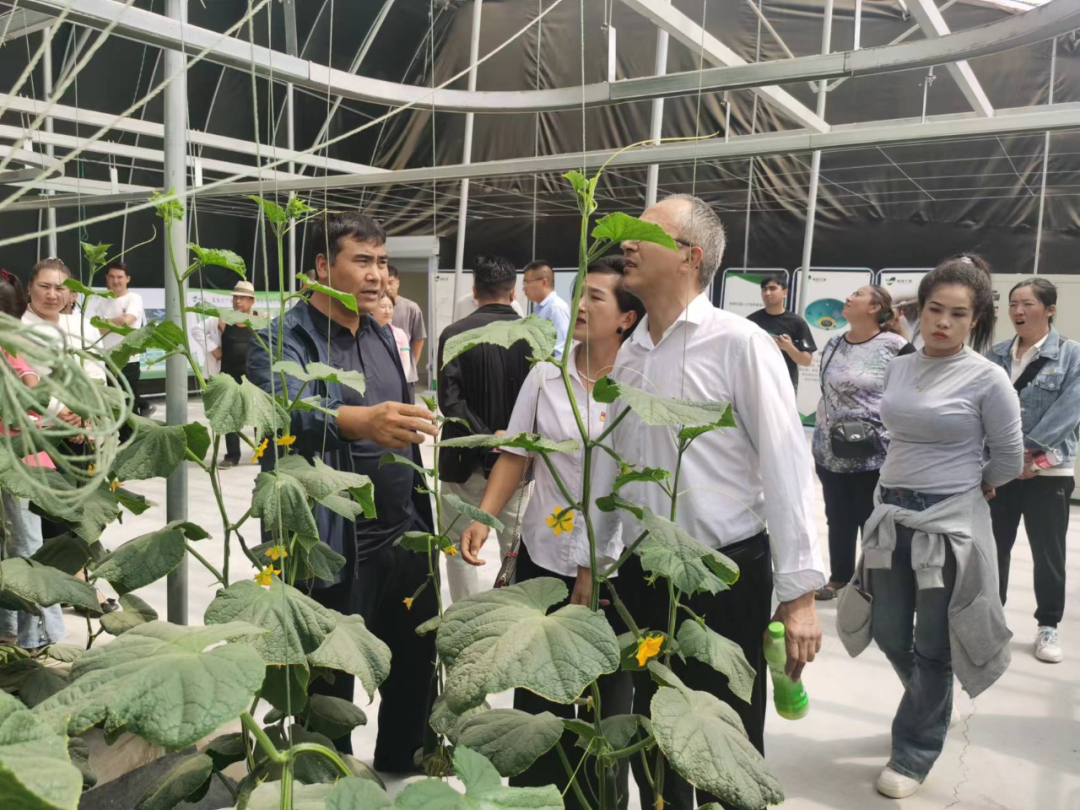 一座座现代化温室大棚内黄瓜、西瓜、辣椒长势喜人,大家抓住机会与技术专家交流碱地改良、氨基酸用法与用量、植物补钙等农技,探讨设施大棚蔬菜病虫害解决方案,大家对大空间现代温室大棚叹为观止。