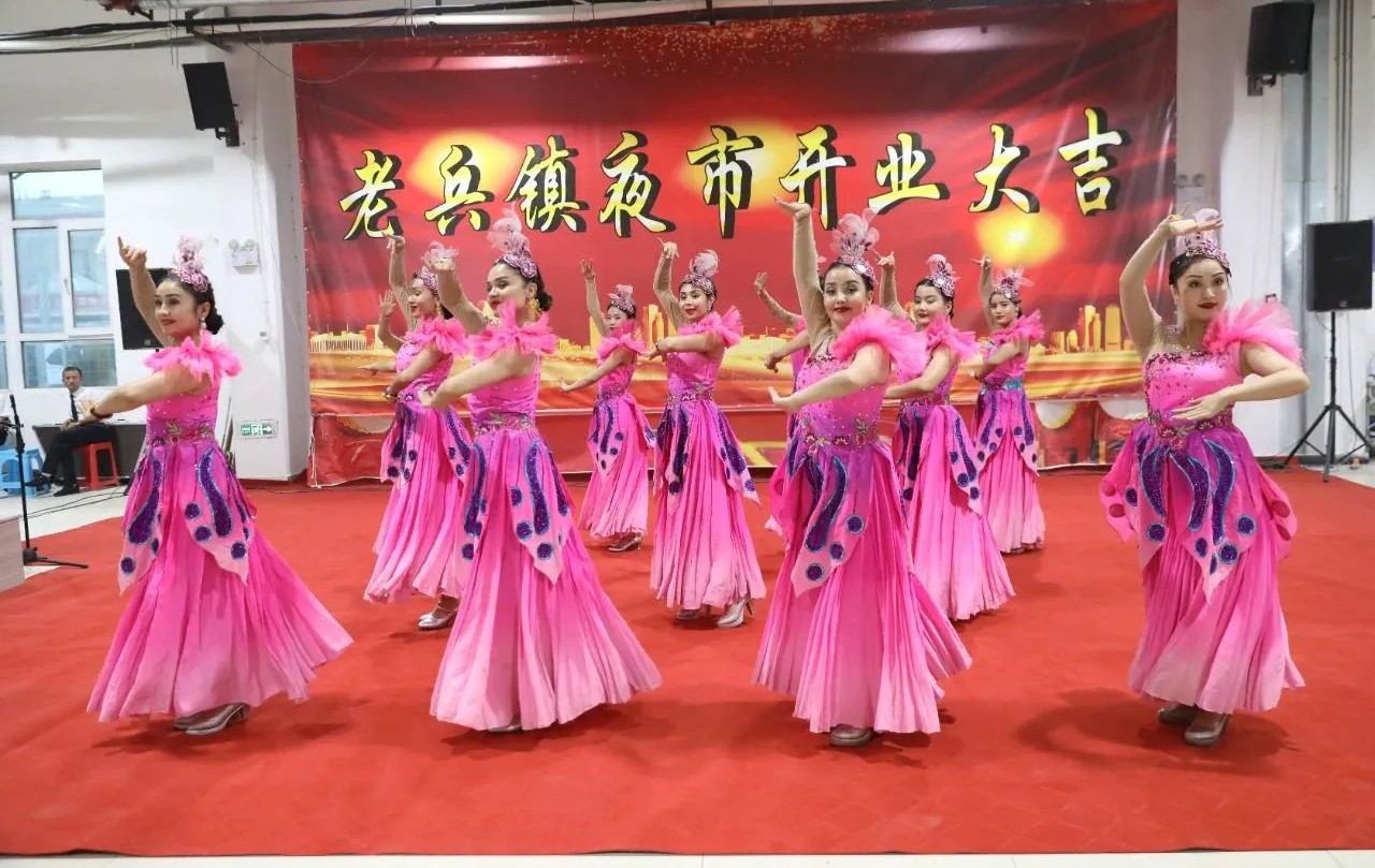 老兵镇夜市开业现场,人头攒动,热闹非凡,人们纷纷走进夜市,品尝各种美味,观看精彩节目,通过演员们精湛的演技和高超的技艺吸引了在场群众围观,掌声、喝彩声不断。