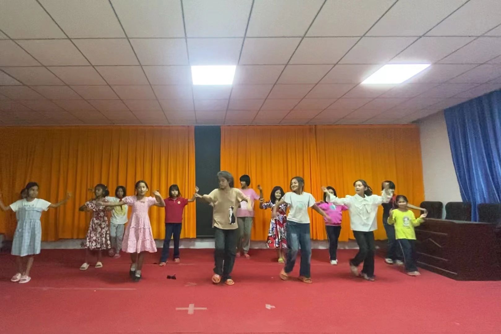 龙源小区推广普通话课堂上孩子们在进行《新哇哈哈》歌舞表演。师市融媒体中心通讯员 杨英婵 摄