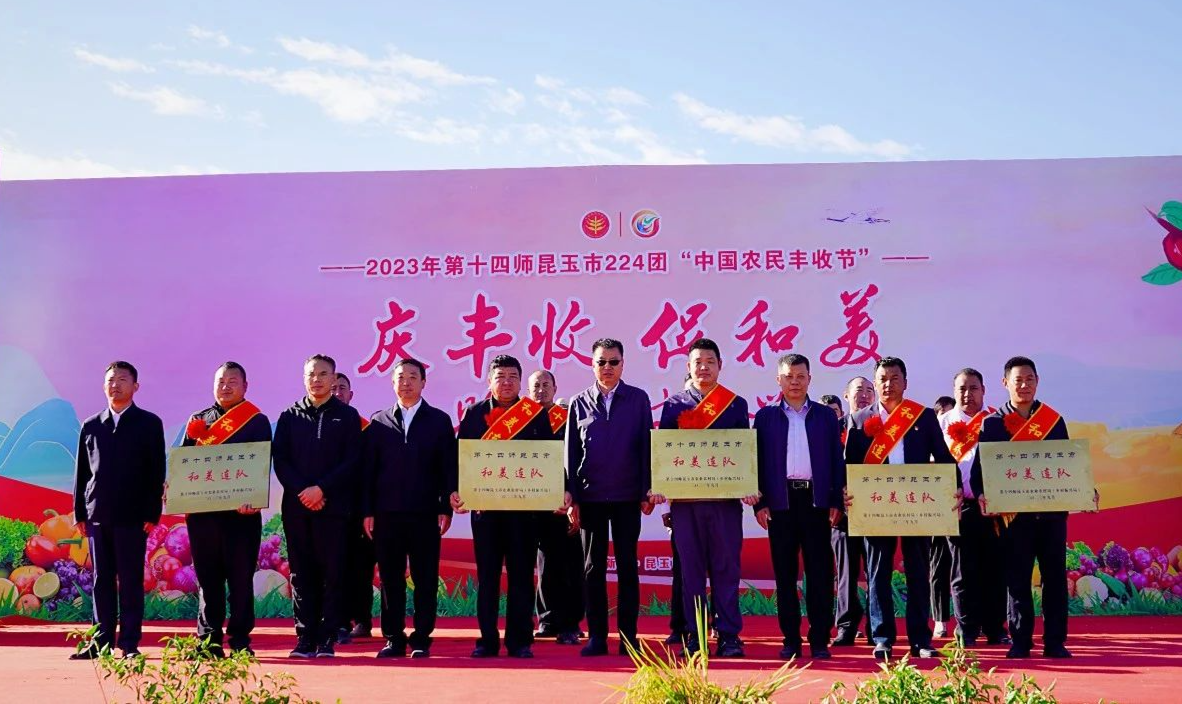 9月23日,在二二四团“庆丰收、促和美”中国农民丰收节上,二二四团十名职工入选第十四师昆玉市“田状元”“田秀才”十佳种养能手。