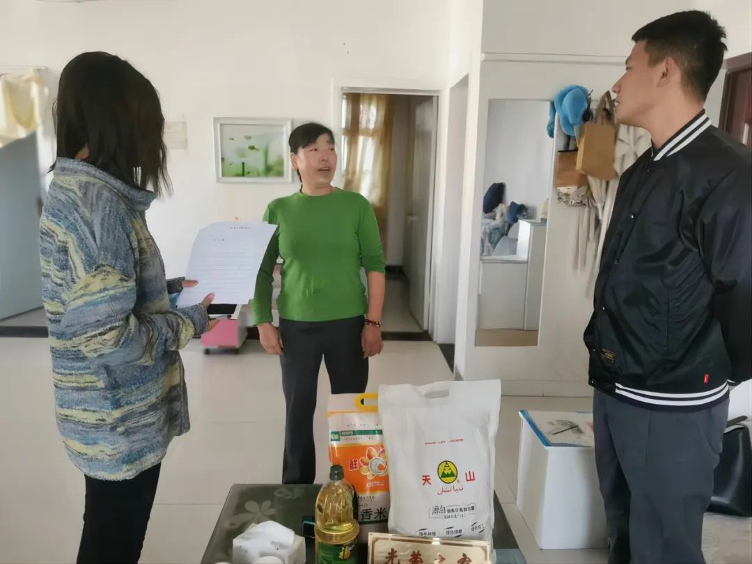 近日,二二四团退役军人服务站对团场2023年秋季入伍的5名新兵家属进行了走访慰问,传达了团党委对他们的关怀之情,送去了米面油等慰问品,并为其家中悬挂了光荣牌。