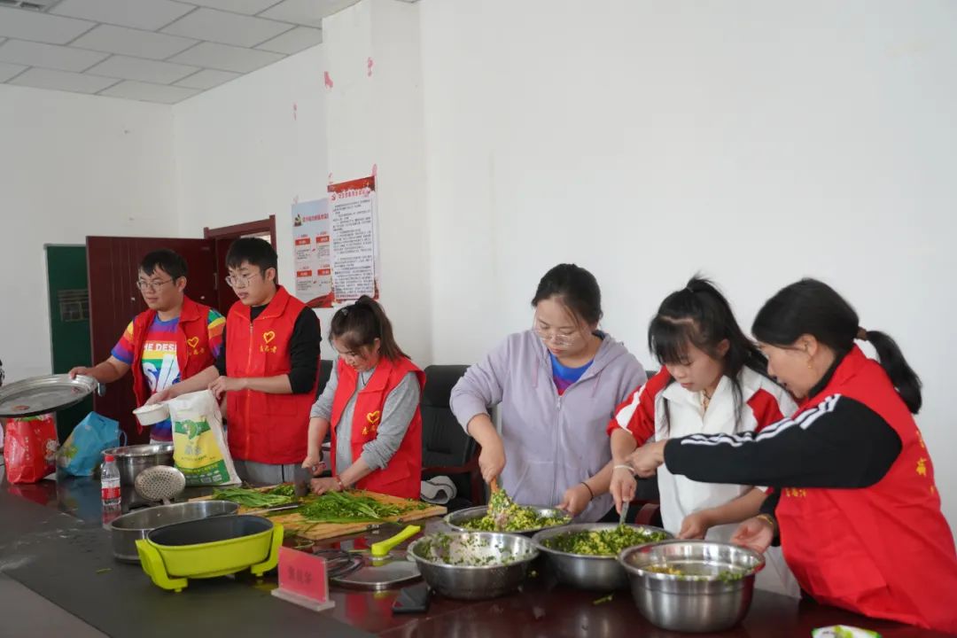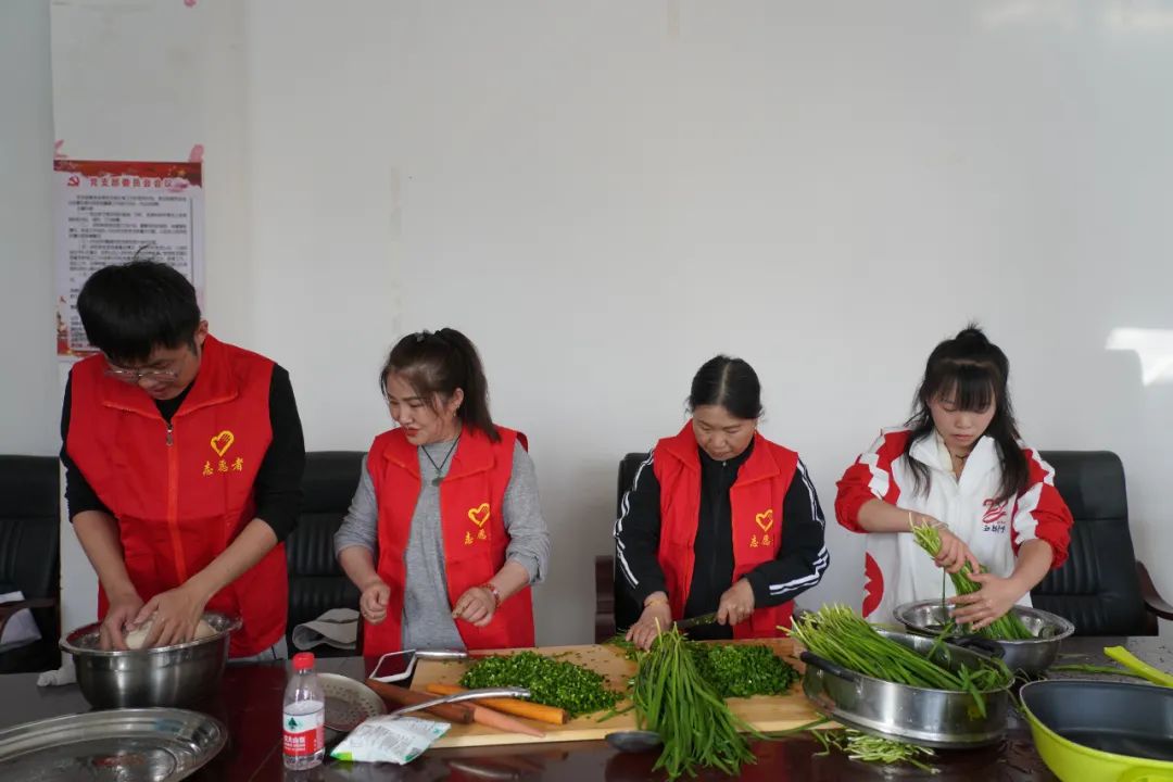 活动现场气氛温馨,充满了笑语欢声。来自二二四团的志愿者们纷纷挽起袖子,和面、调馅、擀皮、包饺子,忙得不亦乐乎。大家手法熟练,一捏一合间,一个个皮薄馅厚的饺子便呈现眼前。还有的志愿者积极与社区的老年人互动,陪他们聊天,分享快乐故事。