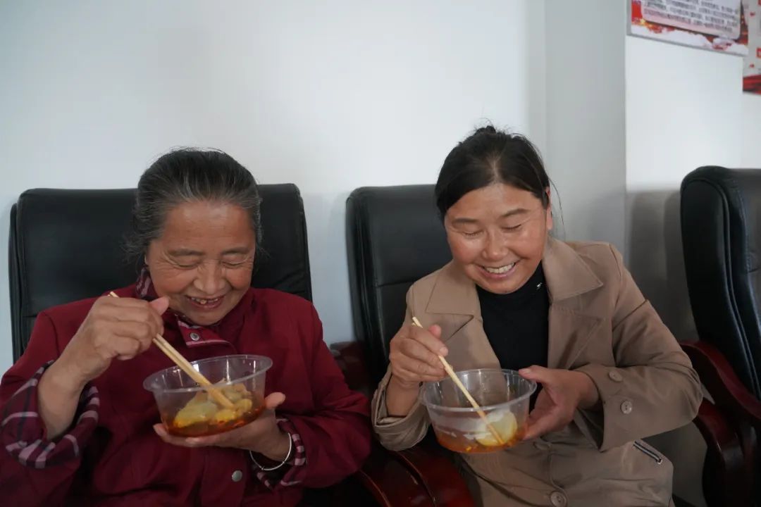 现场众人一起品尝着美味的饺子,聊天、欢笑,其乐融融。这场活动不仅给他们带来了美食和欢乐,更让他们感受到了家人般的温暖和关爱。