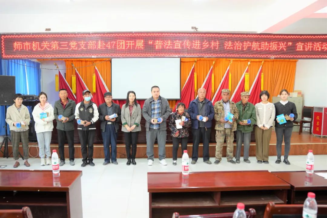 为学习贯彻落实党的二十大精神和学习贯彻习近平新时代中国特色社会主义思想主题教育重要指示批示精神,以及师市对乡村振兴定点帮扶工作有关要求,师市残联围绕我为群众办实事,充分发挥残联组织“代表、服务、管理”的职能作用,把推进残疾人事业高质量发展同乡村振兴战略有效衔接。10月24日,第十四师昆玉市机关第三党支部一行人在四十七团昆仑社区会议室与四十七团残联、总工会和司法所共同开展以“普法宣传进乡村,法治护航助振兴”为主题的活动,今天的普法宣传内容涵盖方方面面,旨在帮助残疾人运用合法权益和法律武器构建起残疾人群体法治保障的“同心圆”,让更多残疾人成为乡村振兴的参与者、分享者和共享者。