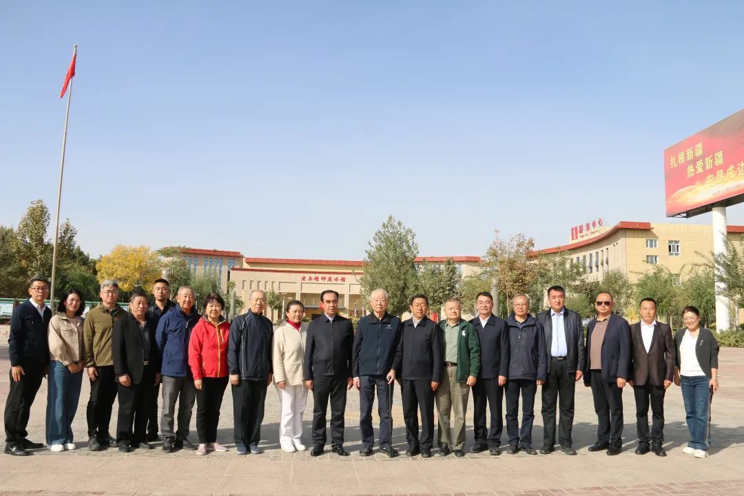 10月17日,王震将军之子王之一行在老兵精神展示馆前合影留念。兵团日报全媒体记者 韩兆辉 摄