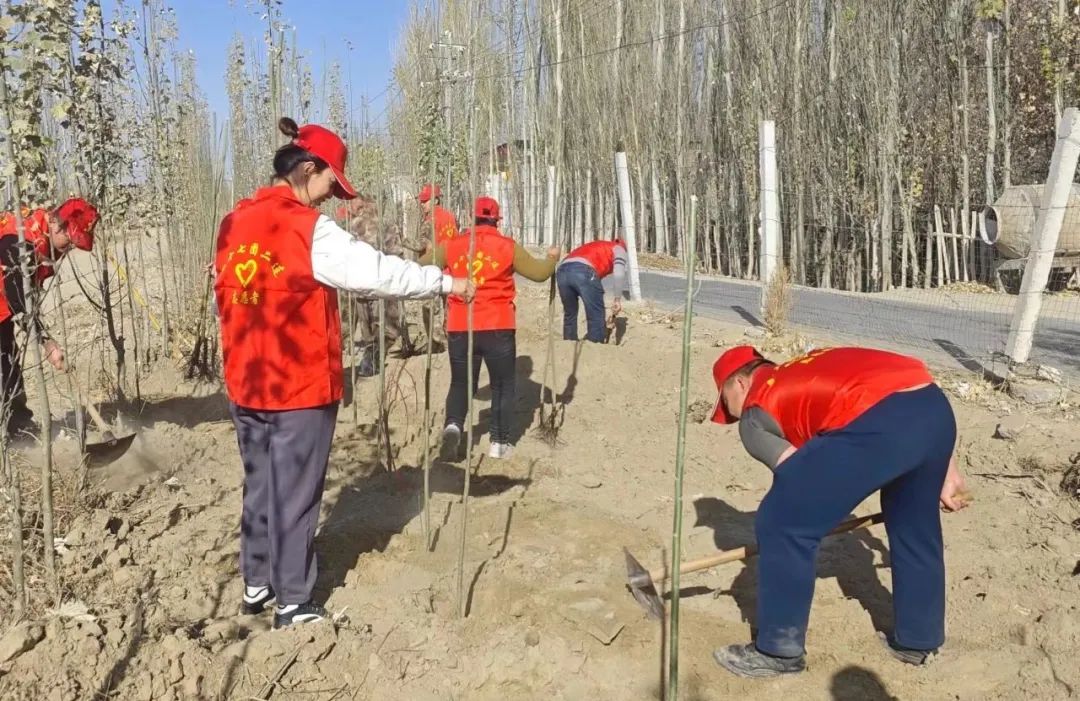 活动当天,志愿服务队和连队工作人员积极参与,共计约15人参与植树。大家纷纷穿上志愿服,手持铁锹、铁锄等工具,来到东二斗边界林带,为连队植树绿化贡献一份力量。