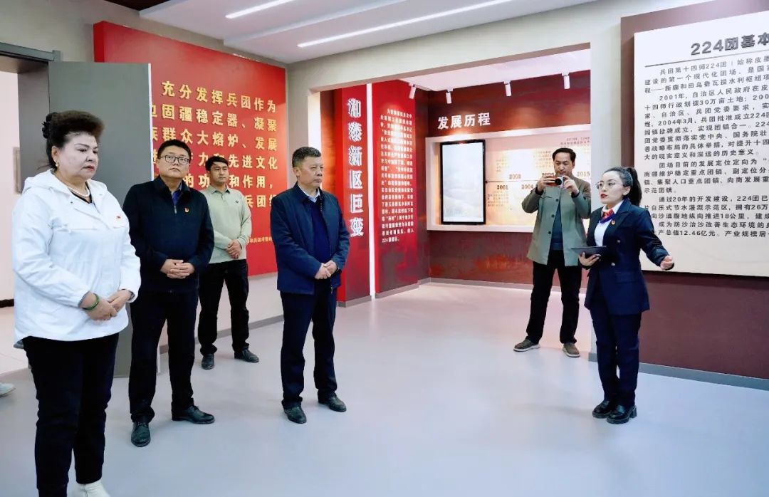 11月21日,策勒县人大常委会党组副书记、主任吐送阿依·依地热司率队来二二四团考察交流。二二四团党委书记、政委任海明及师团相关部门负责人陪同考察。