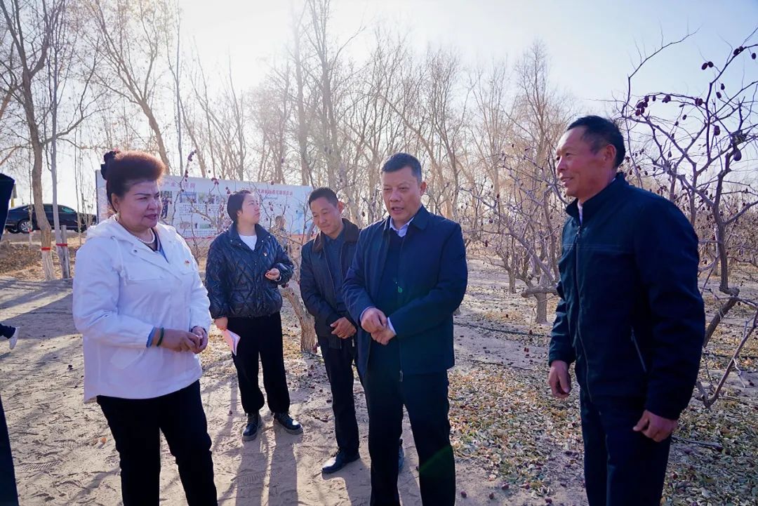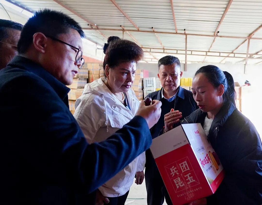 在八连生态农业项目基地及万亩产业园,考察组一行详细了解了二二四团红枣产业种植模式、线上销售情况及设施农业投资、建设、管理、运营等情况。