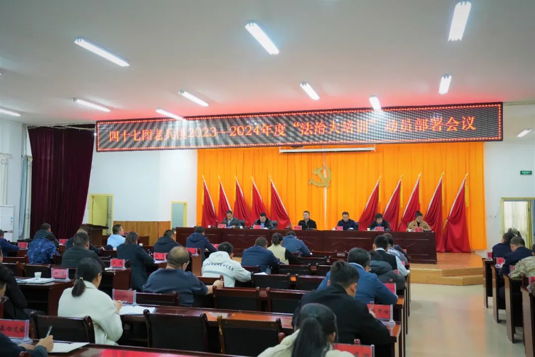 为完整准确贯彻新时代党的治疆方略,进一步贯彻落实兵团、师市“群众法治大培训”动员会议精神,12月4日,四十七团老兵镇召开“群众法治大培训”动员大会。四十七团党委书记、政委、党委全面依法治团委员会主任郭鸿海出席会议并作动员讲话,四十七团党委副书记、副政委、党委全面依法治团委员会委员夏明主持会议。四十七团在家团领导、党委全面依法治团委员会委员,机关各部门、医院、学校、幼儿园、派出所、社保所、司法所、寺管会负责人,各连队(社区)党支部书记、连长(主任)参加会议。