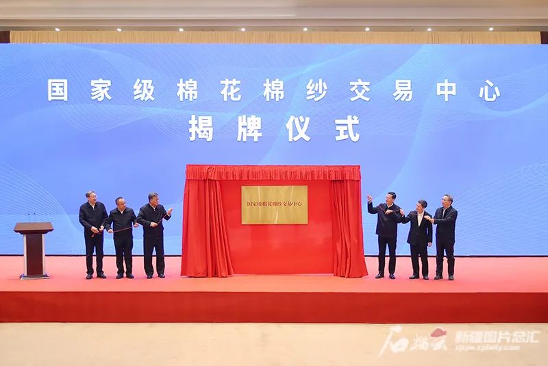 12月18日,由自治区人民政府、新疆生产建设兵团和中华全国供销合作总社共同设立的国家级棉花棉纱交易中心在新疆国际会展中心揭牌成立。自治区党委书记、兵团党委第一书记、第一政委马兴瑞出席揭牌仪式并为交易中心揭牌。中华全国供销合作总社党组书记、理事会副主任韩立平,自治区党委副书记、自治区主席艾尔肯·吐尼亚孜致辞并揭牌。