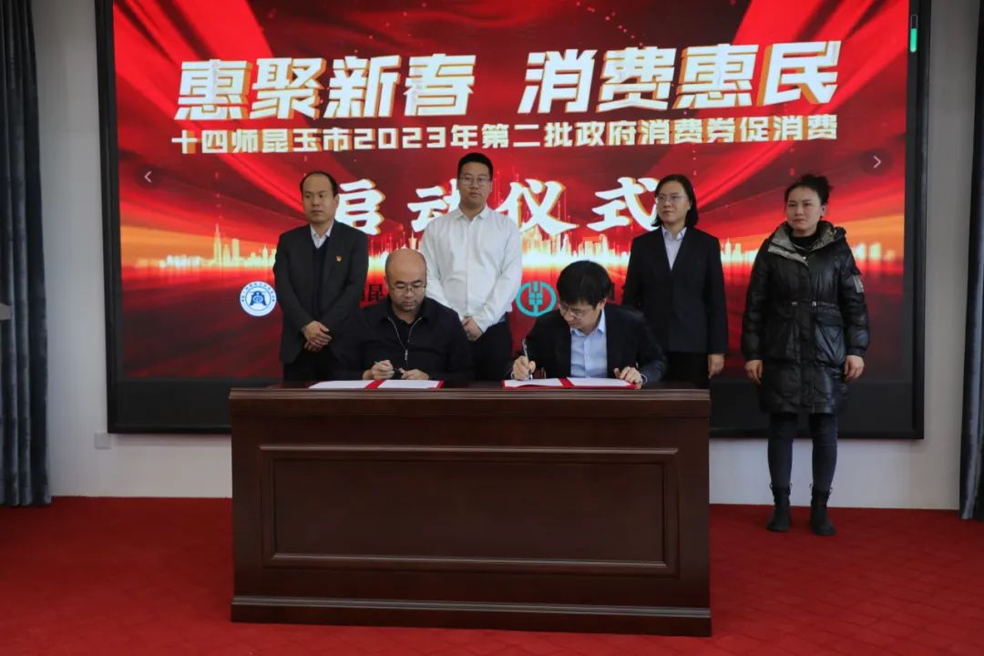 为贯彻落实兵团关于统筹推进消费促进和经济提升系列决策部署,强化消费补贴工作措施,12月26日,师市商务局和农业银行昆玉兵团分行共同举办了“惠聚新春,消费惠民”活动启动仪式,2023年第二批政府消费券促消费活动拉开序幕。