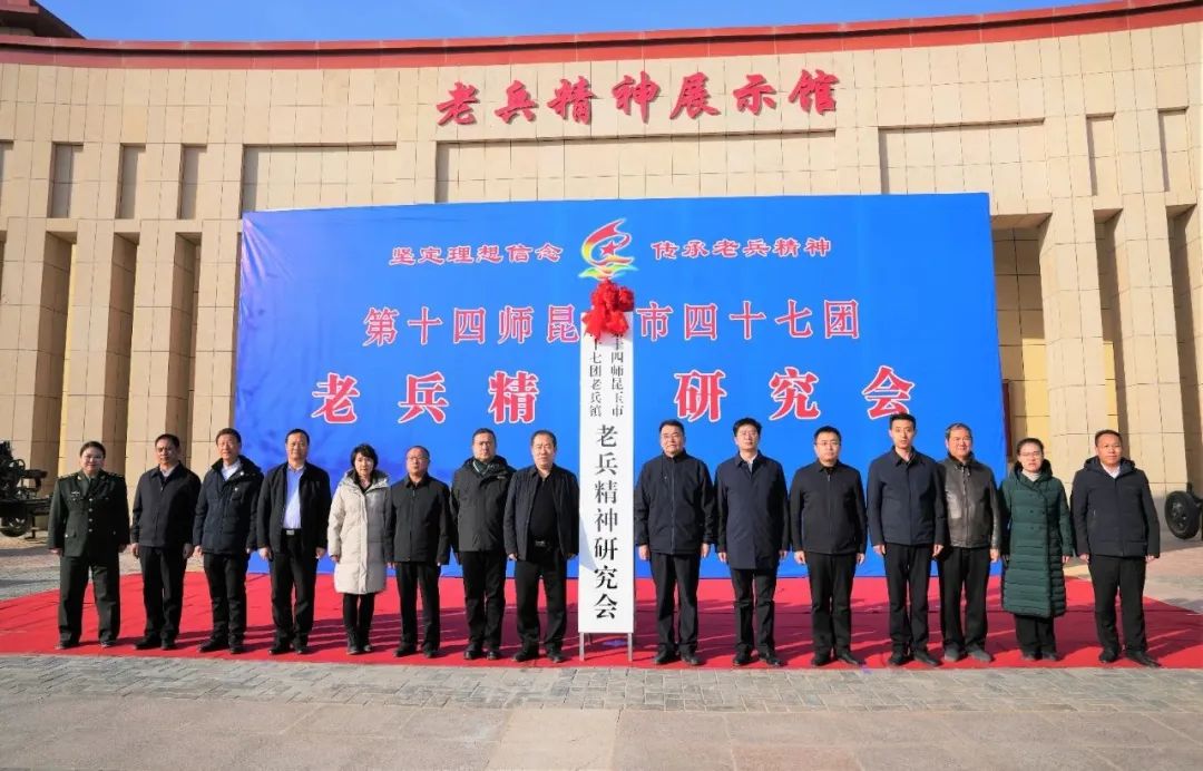 为弘扬老兵精神,赓续红色血脉,1月18日,第十四师昆玉市四十七团老兵镇举行老兵精神研究会揭牌仪式。出席揭牌仪式的有第十四师昆玉市党委常委、副师长、昆玉市人民政府党组成员、副市长李丹,四十七团党委书记、政委、二级巡视员郭鸿海,和田地区及师市相关部门领导参加揭牌仪式。