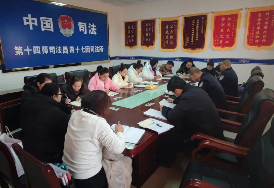 中国共产党新疆生产建设兵团第八届委员会第七次全体会议于2024年1月12日在乌鲁木齐召开。近日,四十七团司法所组织全体工作人员专题学习会议精神。