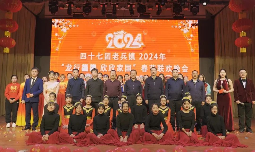 随着春节的脚步日益临近,四十七团沉浸在一片喜庆祥和的氛围中。为了庆祝这个中华民族的传统佳节,四十七团各单位经过精心策划和准备,于1月26日,在机关一楼的演播大厅举办了一场盛大的春节联欢晚会。这场晚会的主题为“龙行龘龘 欣欣家国”,寓意着在新的一年里,四十七团全体职工群众将如同腾飞的巨龙一般,奋发向前,共同创造更加美好的生活。第十四师昆玉市党委副书记、第十四师副政委,第十四师昆玉市党委组织部部长李晋阳、四十七团老兵镇党委书记、政委、二级巡视员郭鸿海、在家团领导,出席本次晚会。