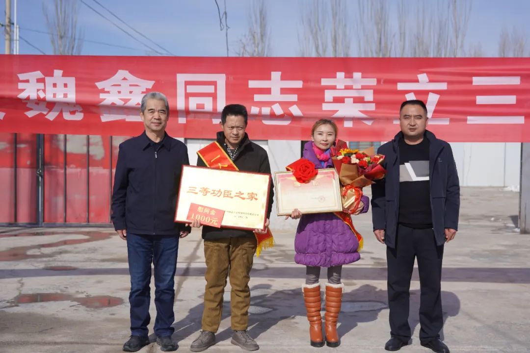 “一封喜报传佳讯,一席关怀暖人心。”2月2日,师市退役军人事务局,二二四团武装部、退役军人服务站开展联合送喜报活动,工作人员手持立功牌匾和鲜花,敲锣打鼓为荣立“三等功”、“四有士兵”的现役军人魏鑫送去立功牌匾、慰问金及慰问品,为荣获“四有士兵”的现役军人王子豪送去喜报和慰问品,并向他们的家人致以热烈祝贺和崇高敬意。