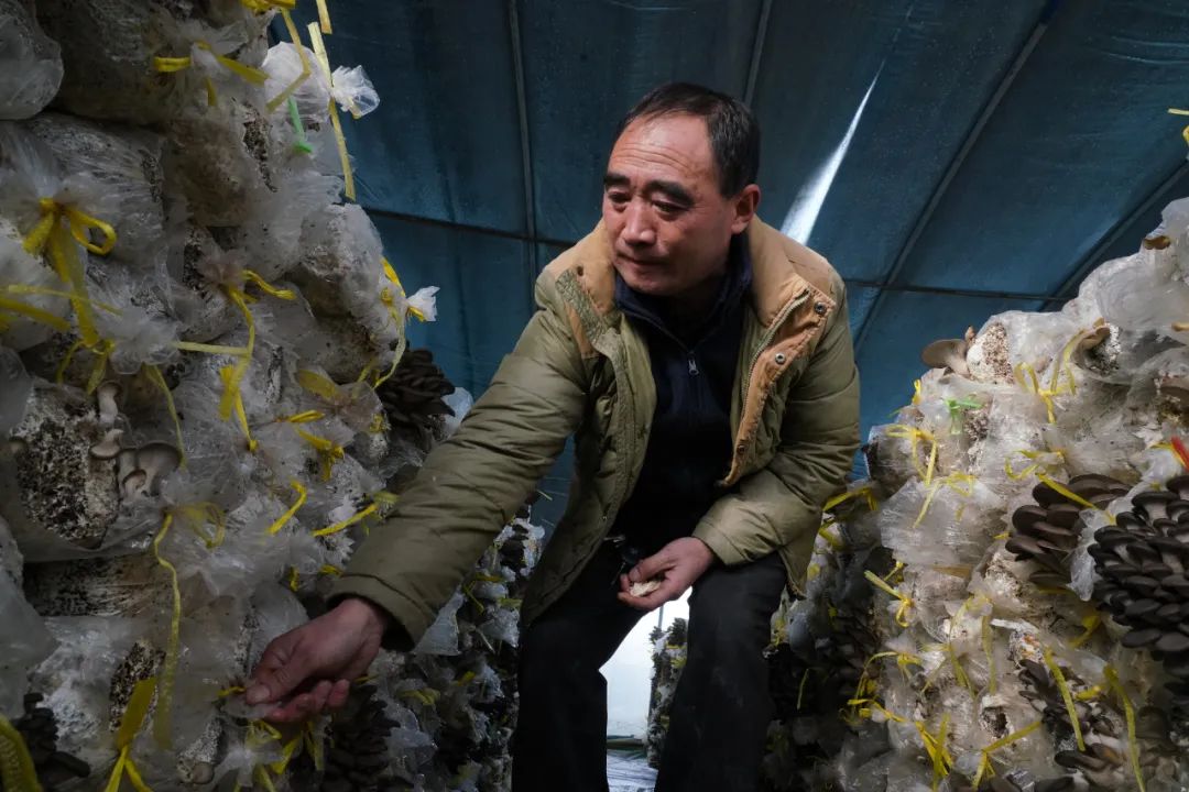 然而,随着冬天低温的影响,蘑菇的生长受到了巨大挑战,自己改造的厂房的环境已经无法满足蘑菇的生长需求。为了解决这个问题,龙先明深思熟虑,决定投资一万元,在家门口的空地上盖大棚,为蘑菇创造一个更加适宜的生长环境。