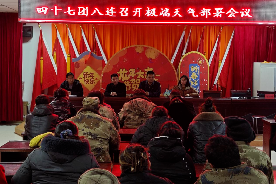 为应对近期可能出现的极端天气,保障连队设施农业生产安全。2月18日,四十七团八连组织召开了职工群众极端天气部署大会。四十七团党委常委、副团长李江华出席会议并讲话。
