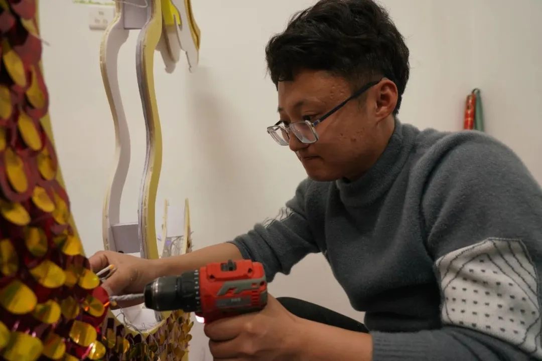 走进二二四团党建工作办公室,西部计划志愿者胡宗华正在用绳子捆扎铁丝搭建起来的鱼灯骨架,胡宗华介绍说:“我们参考传统鱼灯做法,计划做一个三米长的鱼灯来参加元宵灯展,寓意着年年有‘余’,目前鱼灯的骨架马上就做好了,剩下的外表装饰再有一天就可以完成,希望到时候大家来参观我们的作品。”