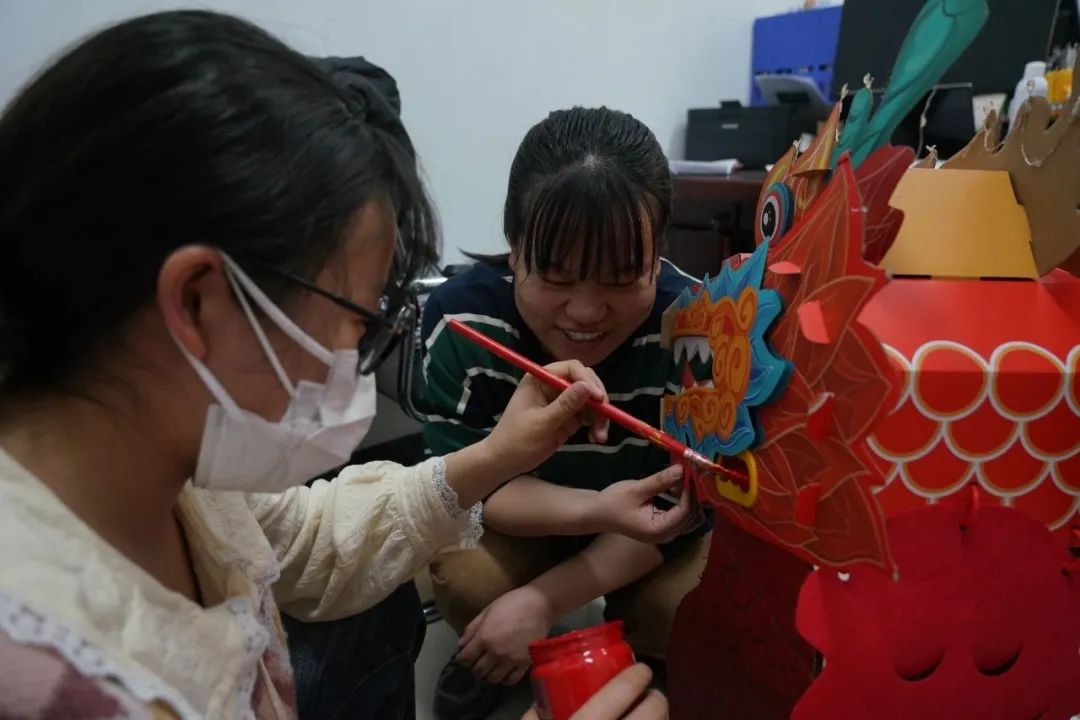 制作现场,大家互相配合,有的画图,有的涂色,有的安装彩灯……忙得不亦乐乎,一个个精致的灯笼在大家的巧手下纷纷成型,现场充满欢声笑语,到处洋溢着浓浓的节日氛围。