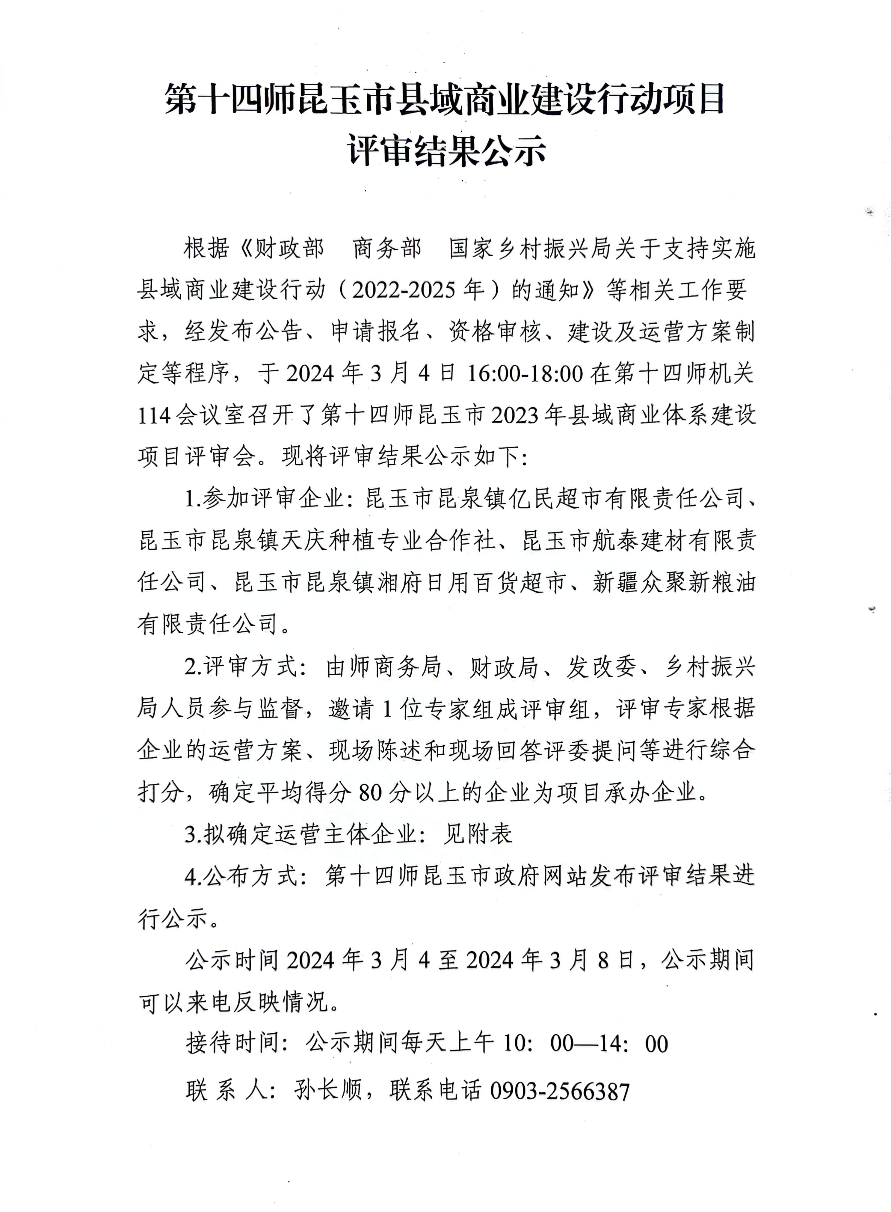 第十四师昆玉市县域商业建设行动项目评审结果公示