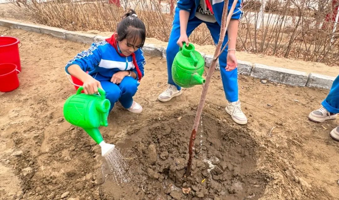三月春风暖,植树添绿茵。近日,二二五团中学组织学生在校内开展义务植树活动,让学生化身小小志愿者,参与到活动当中。