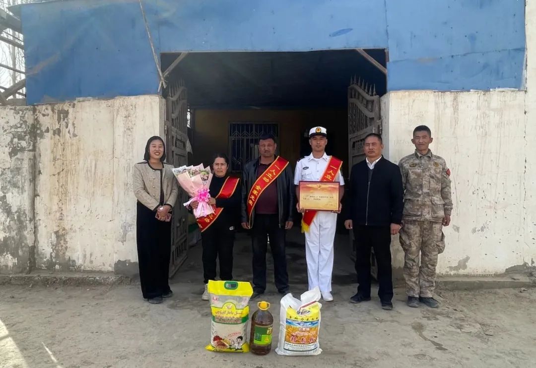 活动现场,四十七团党委常委、政法委书记、武装部部长、统战部部长贺伟宣读了立功喜报,为立功军属佩戴光荣绶带并发放慰问品。鼓励亚尔穆海麦提·土迪麦麦提在部队安心服役,全身心投入到部队训练,练就过硬本领,做一名听党指挥、能打胜仗、作风优良的新时代军人,为国防事业作出应有贡献,给家乡人民交上一份满意的答卷,争取再创佳绩。随后又与军人军属亲切交流,详细了解军属的身体状况和生活情况,对所获得的优异成绩表示祝贺并感谢家属对国防事业的支持,为国家、为部队培养了优秀的人民子弟兵,同时希望军属继续支持和鼓励孩子继续安心服役,作出更大的贡献。