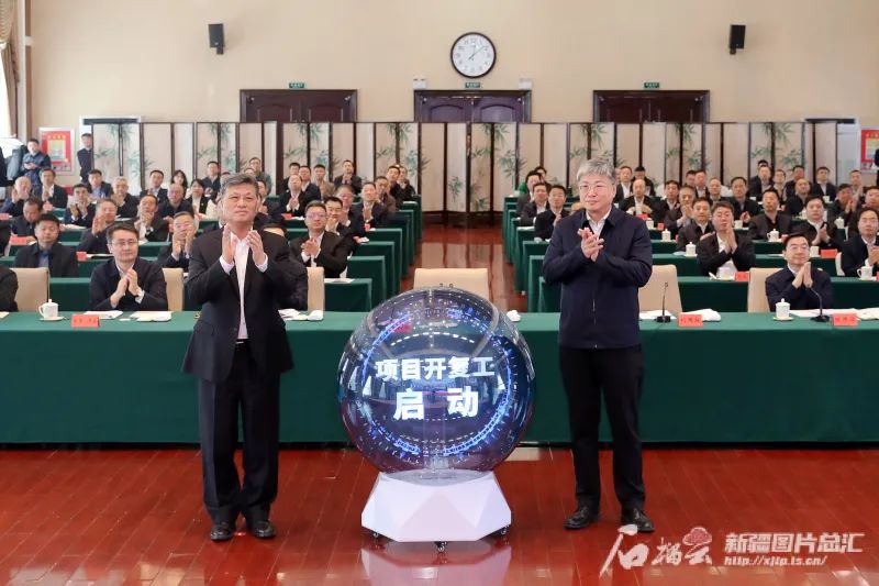 3月28日,国家能源集团在乌鲁木齐举行项目开复工启动会。自治区党委书记马兴瑞与国家能源集团董事长刘国跃共同启动项目建设。石榴云/新疆日报记者 崔志坚摄