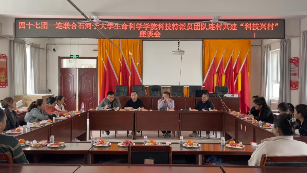 3月27日,石河子大学生命科学学院科技特派员团队一行来到四十七团一连对连村共建科技服务工作进行调研,并参加了连村共建“科技兴村”座谈会,四十七团一连党支部书记、指导员党万兴主持会议,喀尔赛镇和谐村党支部第一书记张艺星及双方工作人员、职工群众代表共同参加,双方就对口帮扶、科研协作、示范带动等方面开展了一系列深入交流与探讨。