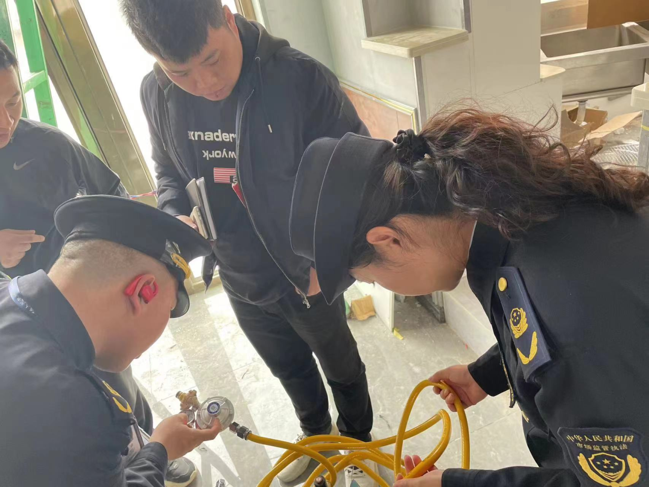 整治过程中,执法人员详细检查了商户的燃气报警设施、燃气灶具、燃气调压阀以及液化气瓶等关键设备的使用情况与合规性,对商户进行现场指导同时提出整改建议。
