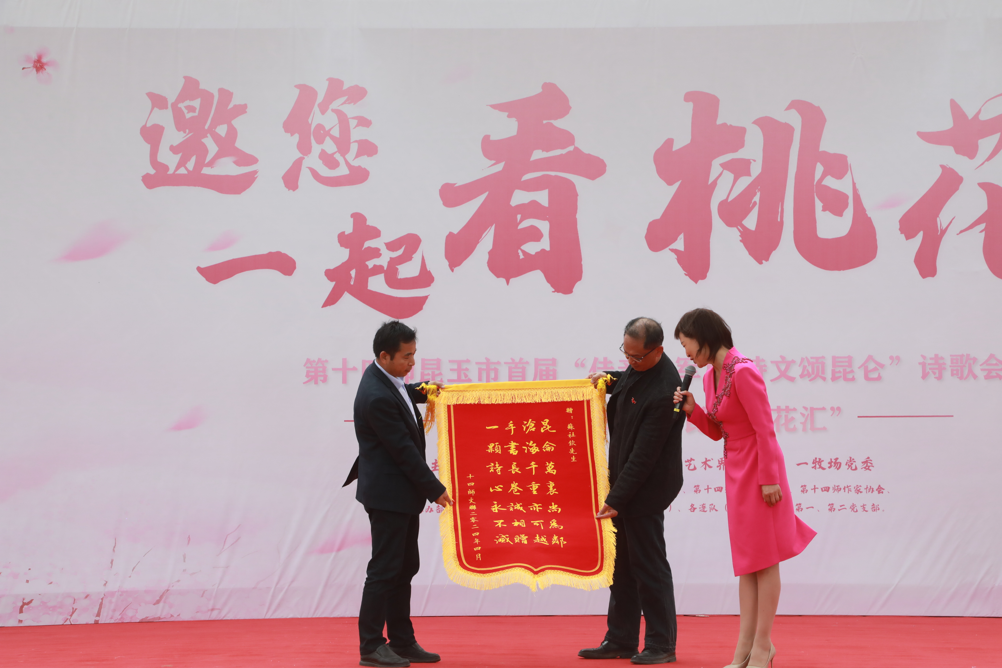 4月20日,第十四师昆玉市首届“佳音歌军垦 诗文诵昆仑”诗歌会暨一牧场第四届赏花汇盛大开幕!师市党委宣传部常务副部长、师市融媒体中心党委书记王建波为活动致辞并宣布活动正式开始。