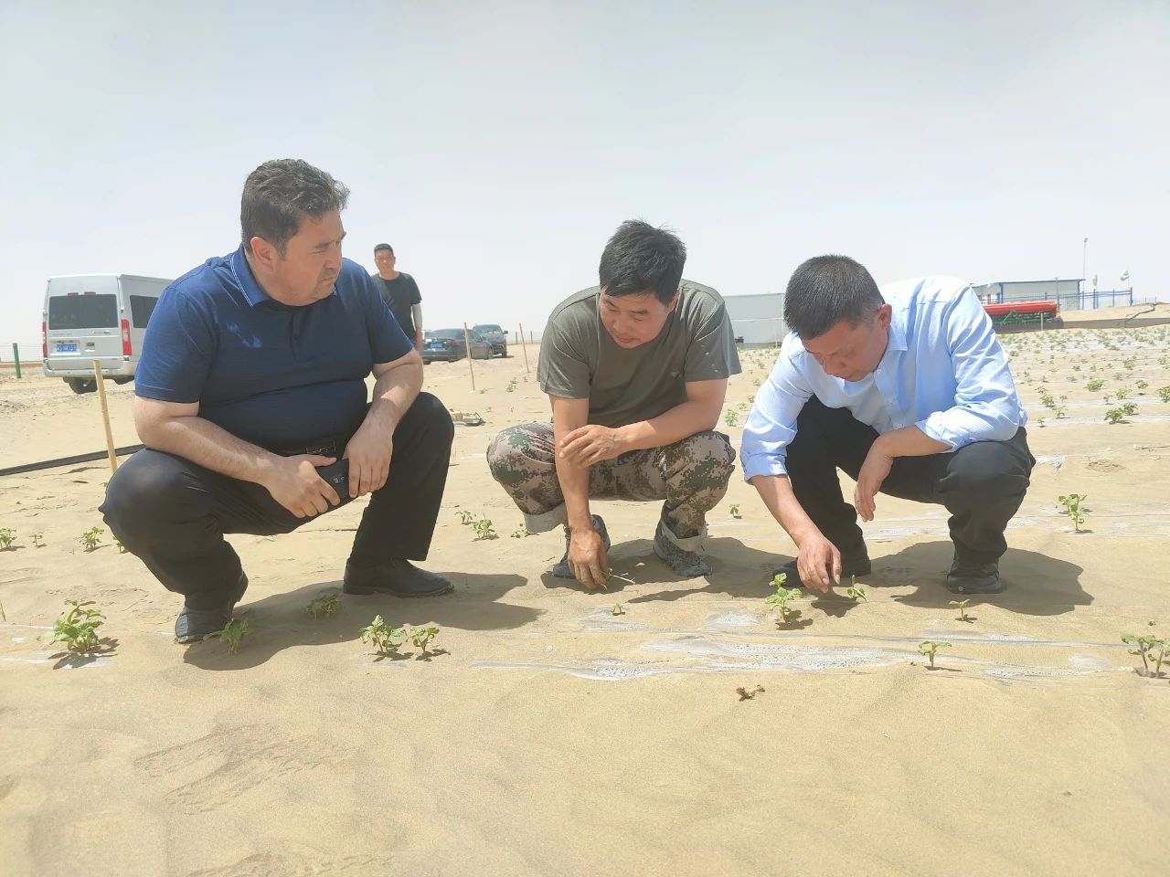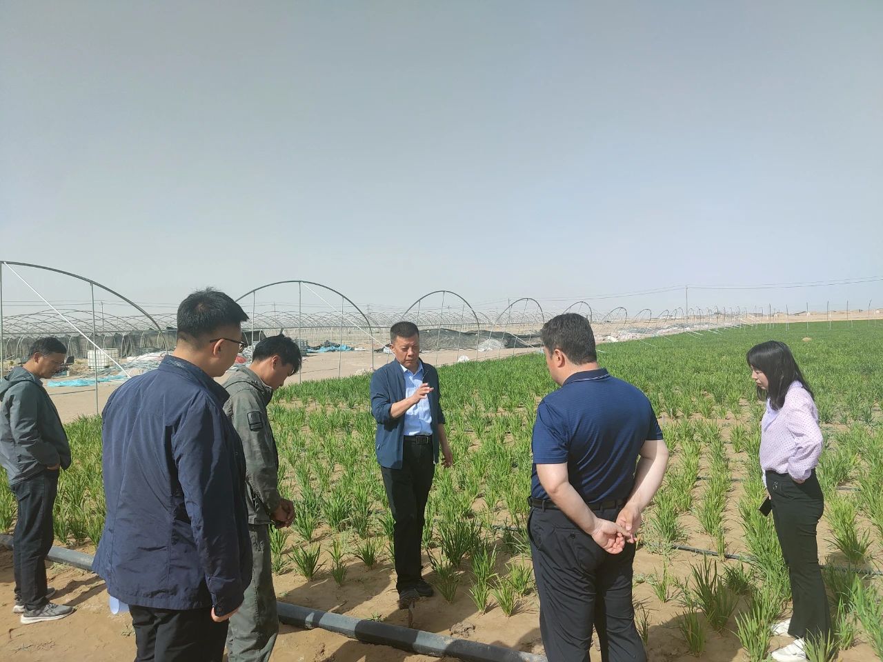 5月8日,224团党委书记、政委任海明,党委副书记、团长玉苏普江·玉努斯带领团党委常委,团产业项目分管领导及经发办、农发中心相关负责同志,深入现代农业产业园、7.38万亩土地种植现场及和泰新区排水设施提升改造、8连一二三产融合项目施工现场等地调研指导。