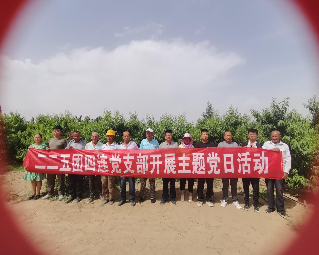 近日,二二五团四连党支部到居民阿依尼萨汗·阿布都艾尼地里开展“疏果迎丰收”主题党日活动。