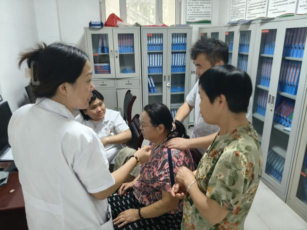 活动现场,四十七团医院中医科负责人艾乐松向连队职工群众普及中医药知识文化、中医药养生保健知识和中医药治未病理念,并根据职工群众身体状况,现场为26名职工群众提供针灸、推拿、拔罐等中医诊疗服务引导广大职工群众认识、了解、使用中医药,促进他们养成健康的生活习惯。给卫生员们示教基本的中医适宜技术应用,进一步促进连队卫生室中医阁建设。