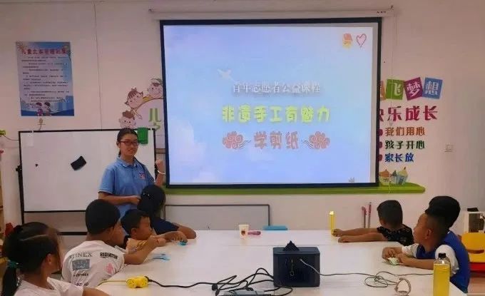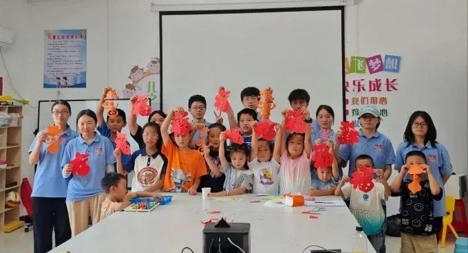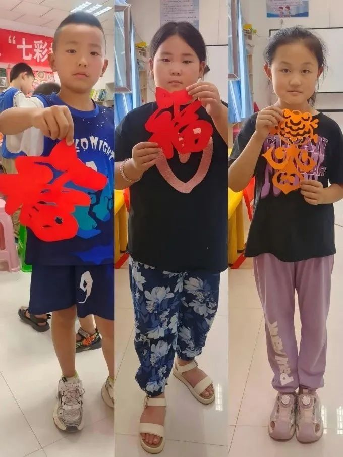 在团队成员的耐心指导下,社区儿童们手中的剪刀灵巧地舞动起来,一张张彩纸在他们手中变幻成各种形态的花鸟鱼虫。社区儿童们的脸上洋溢着自豪和喜悦,他们的作品虽然稚嫩,但无不透露出对传统文化的好奇与热爱。