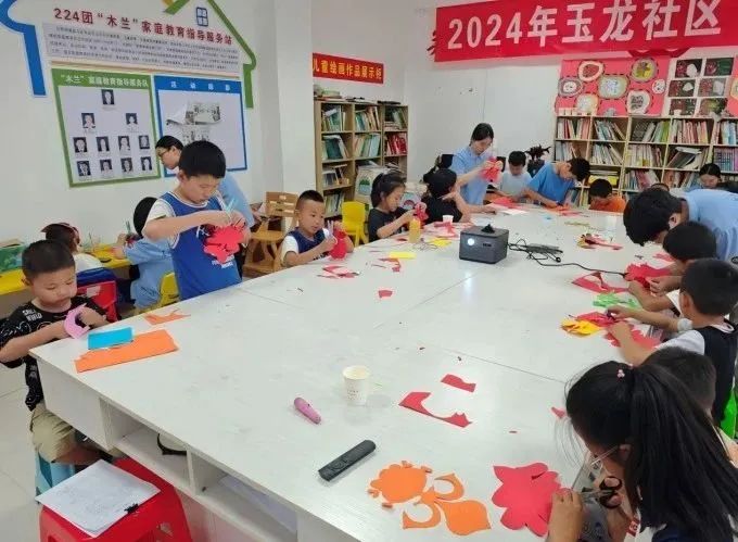 图为社区儿童动手剪纸。通讯员 李浩 摄