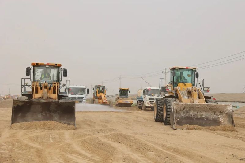 产业先行,交通赋能。与此同时,第十四师昆玉市—墨玉县公路项目建设现场,大型机械开足马力,项目建设全力加速。