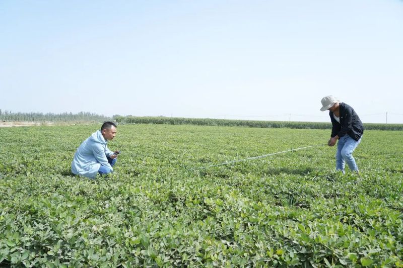 观摩组先后来到二二五团复播花生地、正播花生地、航天育种“京科968”玉米高产示范田,在农业专家实地指导下,分别对花生、玉米进行测产,其中复播花生测产结果为350kg/亩、正播花生454kg/亩、航天育种“京科968”玉米956kg/亩。
