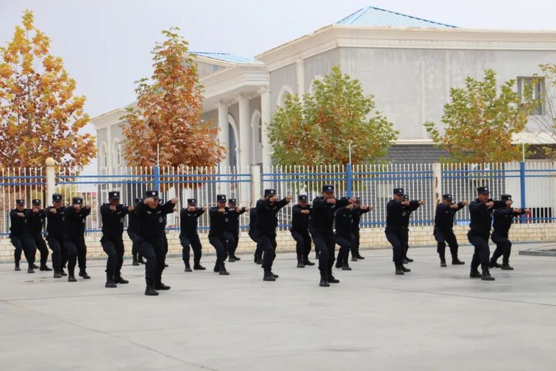 和田垦区公安局喀尔塔格孜派出所干警正在进行操练。师市融媒体中心通讯员 孔王令希 摄