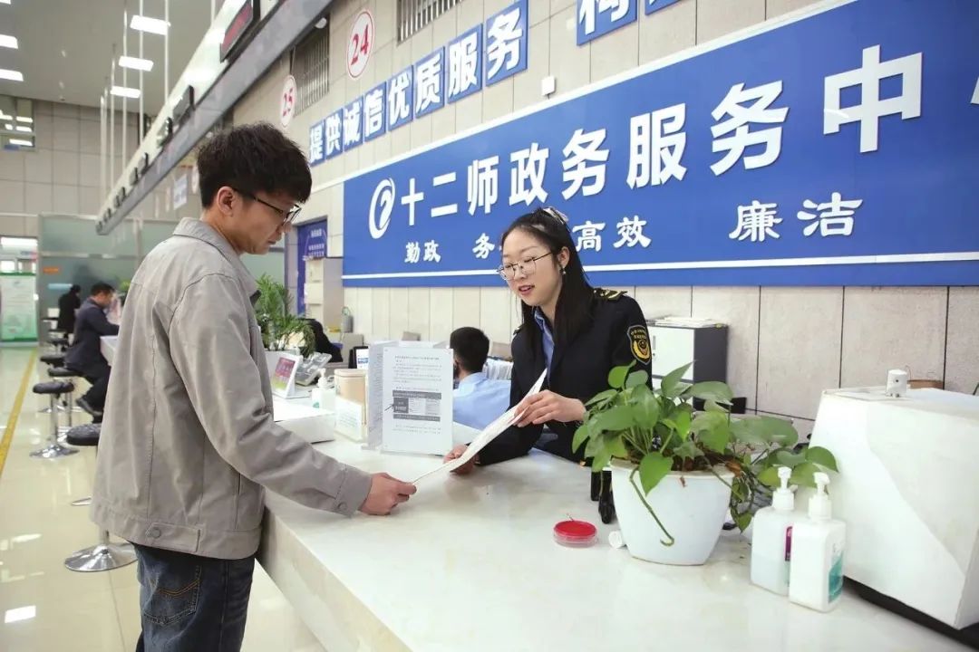 在十二师政务服务大厅“一网通办、一窗受理”窗口,工作人员为办事人员讲解相关流程。冯晓玲 摄