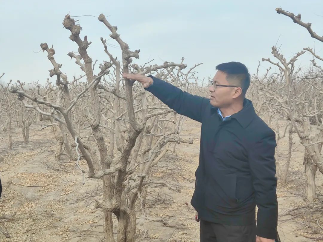 王振磊来到二连红枣种植能手玉素甫·帕完的枣树地头,详细了解今年红枣的产量、种植模式以及今年剪枝情况。根据职工现场修剪展示,王振磊指出其不足之处,并现场亲自教学剪枝,示范坐果部位下移技巧,用通俗易通的语言讲解重叠枝的坏处,分享如何才能提质增效、增收增产。现场职工认真观摩学习,积极询问,王振磊耐心解答。