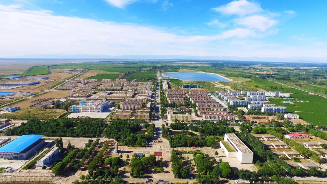 2019年9月9日,老兵镇挂牌成立,曾经的荒滩变成美丽的军垦城镇。
