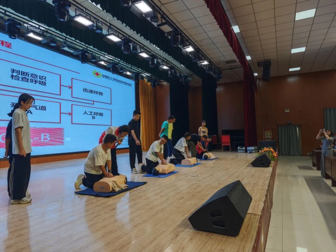 随后,在师资的指导下,学生们分组利用模拟教具进行心肺复苏按压定位、人工呼吸手法等实战演练。培训现场,学生们踊跃参与、认真操作,师资逐一纠正姿势、讲解要点,通过“手把手”教学确保每位学员基本掌握核心救助步骤。