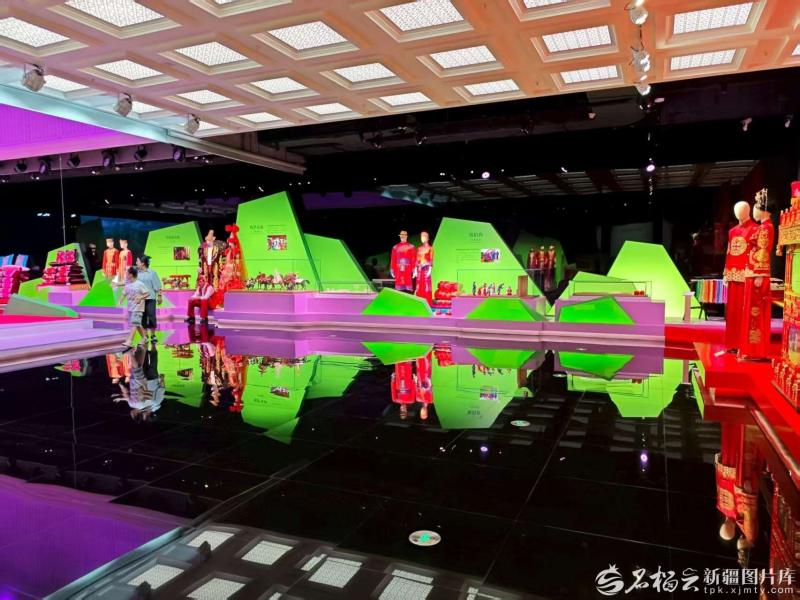新疆非遗馆总建筑面积约13000平方米,展陈面积达4800平方米,以“见人见物见生活”为理念,全面呈现新疆乃至全国非物质文化遗产的丰富内涵与当代价值。馆内设四大基本陈列展,包括“节庆中的非遗”“生活中的非遗”“礼俗中的非遗”“各省区市的非遗”,馆藏作品近3000件(套),从不同维度展现非遗在中华文明中的深厚根基。
