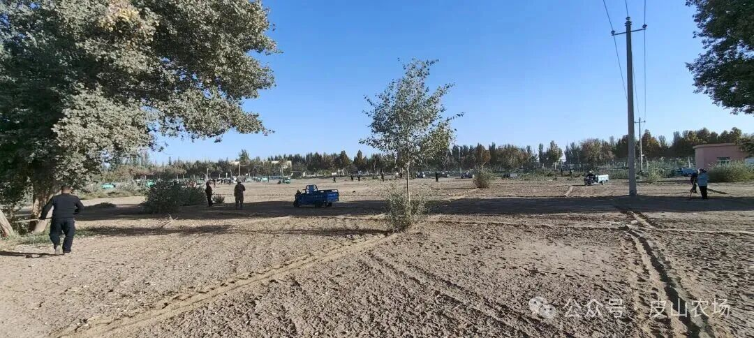 为确保晒场达到“平、净、干”的标准,职工群众分工协作、默契配合。有的手持扫帚、铁锨,对晒场地面的碎石、杂草、尘土进行“拉网式”清理,不放过任何一处卫生死角。党员干部带头冲锋在前,职工群众积极主动参与,现场呈现出一派热火朝天的劳动景象,经过数小时的共同努力,原本略显杂乱的晒场变得整洁一新,为后续红枣集中晾晒、分级、挑选奠定了基础。