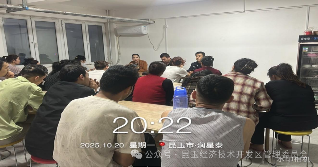 警务站人员在润星泰纺织开展流动人口、安全、稳定工作宣讲